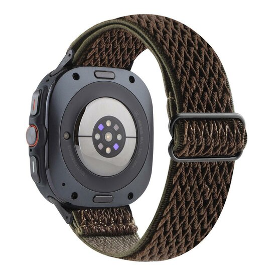 Elastische solo loop nylon bandje - Bruin met donkergroen - Samsung Galaxy Watch 8 - 40mm / 44mm