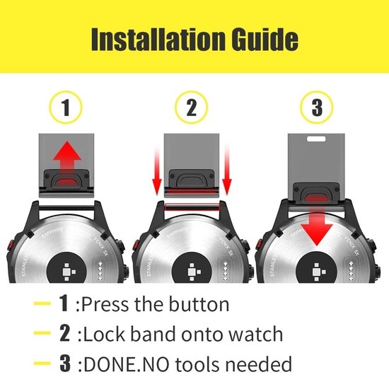 Dit bandje heeft een aanzetmaat van 20mm en bevat een QuickFit aansluiting. Deze QuickFit aansluiting is een speciaal door Garmin ontworpen kliksysteem, waardoor het nog gemakkelijker is om van band te wisselen.