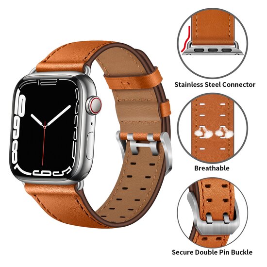 Leren band met twin gesp - Lichtbruin met zilveren gesp - Geschikt voor Apple Watch 38mm / 40mm / 41mm / 42mm