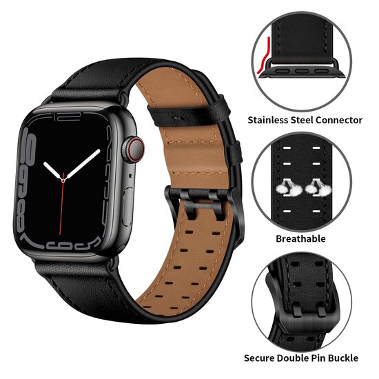 Leren band met twin gesp - Zwart met zwarte gesp - Geschikt voor Apple Watch 44mm / 45mm / 46mm / 49mm