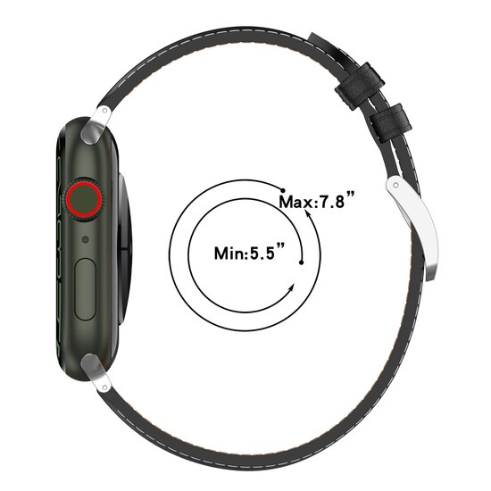 Dit stijlvolle leren bandje is de perfecte accessoire voor jouw Apple Watch. Met zijn tijdloze design en premium kwaliteit leer, voegt het bandje een verfijnde uitstraling toe aan je smartwatch. Het soepel en duurzaam leer vormt zich comfortabel om je pols, waardoor je het de hele dag probleemloos kunt dragen. Dankzij de stevige roestvrijstalen sluiting blijft het bandje goed op zijn plek, terwijl de nauwkeurige pasvorm speciaal ontworpen is voor de Apple Watch, zodat je hem eenvoudig kunt bevestigen en afnemen.