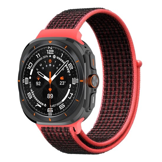 Nylon loop bandje - Rozerood met zwart - Samsung Galaxy Watch Ultra 47mm